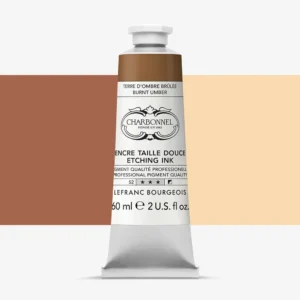 Charbonnel Burnt Umber Etching ink . Charbonnel’s Burnt Umber on taiteilijoiden keskuudessa suosittu maanläheinen sävy, joka valmistetaan synteettisestä keltaisesta rautaoksidista (PY42) ja synteettisestä punaisesta rautaoksidista (PR101). Tämä yhdistelmä tuottaa rikkaan, lämpimän ruskean sävyn, joka on ihanteellinen syvyyden ja lämmön luomiseen tummemmille alueille maalauksissa ja grafiikassa. Burnt Umber soveltuu erinomaisesti varjoihin ja sitä voi yhdistää muihin maanväreihin tasapainoisen, luonnollisen ja hillityn sävypaletin luomiseksi.