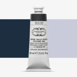 Charbonnel Payne’s Grey 200ml Etching ink. Payne’s Grey on syvä, hillitty siniharmaa sävy, joka sopii erinomaisesti ilmeikkäiden tunnelmatehosteiden ja hienovaraisten sävyvaihteluiden luomiseen painatuksessa. Sen monipuolinen sävy tarjoaa runsaasti mahdollisuuksia sekä varjojen syventämiseen että pehmeiden väriliukujen aikaansaamiseen, mikä tuo kuviin syvyyttä ja ilmettä. Tämä sävy on erityisen suosittu maisemien, muotokuvien ja tummasävyisten teemojen yhteydessä, koska se tuo hienostuneesti esiin niin tummia kuin rauhallisen harmonisia vivahteita.