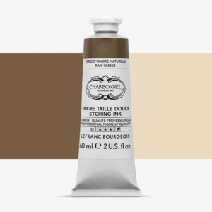 Charbonnel Raw Umber Etching ink. Charbonnel’s Raw Umber on luonnollinen maanväri, joka valmistetaan ruskeasta rautaoksidista (PBr7), tuottaen klassisen, neutraalin ruskean sävyn, jossa on maanläheisiä ominaisuuksia. Tämä väri on erityisen arvokas taiteilijoille, jotka työskentelevät syvyyden ja kontrastin parissa, sillä Raw Umber sopii erinomaisesti varjoihin ja lämpimien, hillittyjen sekoitusten luomiseen.