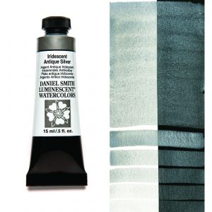 Daniel Smith Iridescent Antique Silver Extra Fine akvarell är en tennnyans med en djupare ton än andra metalliska silverakvareller. En del av DANIEL SMITH Luminescent Watercolors-kollektionen, iriserande akvareller reflekterar och sprider ljus, och deras transparenta kvalitet ger en spännande känsla av djup till verket. Varför välja självlysande vattenfärger? Eftersom naturen har optiska överraskningar i färgerna som ses i fågelfjädrar, insekter, fiskar och snäckskal, har många blommor också en pärlemorfärgad daggvit glans. Tänk på iriserandet av en snigelslinga eller ett silverglänsande spindelnät.