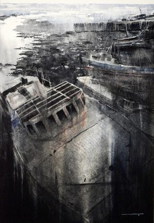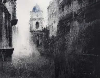 “Before DANIEL SMITH, I had never used colours that on their own can generate textures and granulations by simply adding water. Bloodstone Genuine, Piemontite Genuine, Lunar Black, Lunar Blue, Moonglow and Cascade Green are surprising and perfectly unpredictable. Chinese White, Payne’s Gray, Ultramarine Blue and Lavender are foundation colours that support the expressiveness in my work. With these ten colours, I can represent the essence of the places I want to embrace by respecting the language of water and its freedom.”