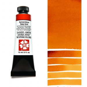 Daniel Smithillä on kaksi päätavoitetta akvarellimaalien valinnassa: mahdollisimman korkea valonkestävyys ja samalla ainutlaatuiset pigmentit, joita kukaan muu ei tarjoa. Daniel Smith Quinacridone DeepGold Extra Fine watercolor