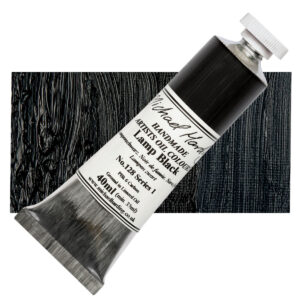 this is pure Carbon and probably the first pigment our ancestors ever used to decorate their caves. Lamp Black is a soft, slightly warm shade whose surface gives it a greyish aspect. It’s probably not the best choice for unmixed underpainting because of its tendency to move while drying, but this can be remedied with the addition of good-drying Earths. Lamp Black tends to dry with a matte finish, which can be compensated for with the addition of a little stand oil.