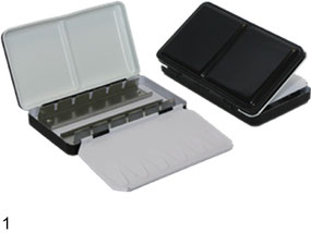 Tukeva, uudelleenkäytettävä akvarellilaatikko on ulkopuolelta musta ja sisältä valkoinen. Valitse tilasta 12, 24 tai 48 puolinappia varten.
