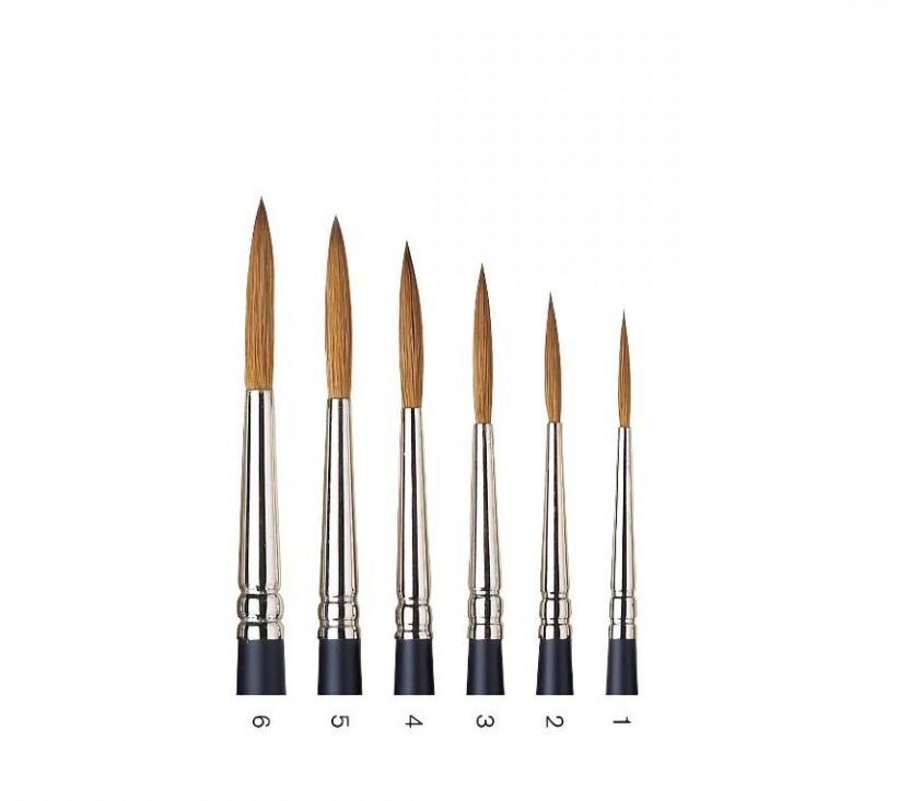 W&N AWC Rigger Kolinsky sable hair skapades för att ge konstnärer möjligheten att använda en borste med Kolinsky-borst till ett överkomligt pris. För att säkerställa en lång livslängd och för att förhindra att hylsan rostar är borsten försedda med nickelhylsor. Den formade ergonomiska borsten ligger bra i handen och är extra bekväm att måla med. Artists Water Color Sable-produktfamiljen är baserad på de mest populära och användbara akvarellpenselformerna. Winsor & Newton har använt sin erfarenhet för att förbättra profilen på runda borstar genom att ge skaftet en perfekt formad kropp och en tunn borstspets. En ny penselform har introducerats och kallas ”skarp rund”. Det är perfekt när du behöver mycket färg på en gång eller att måla fina detaljer.